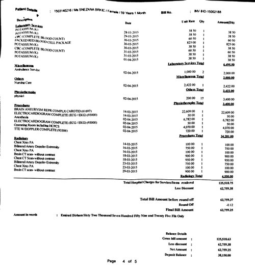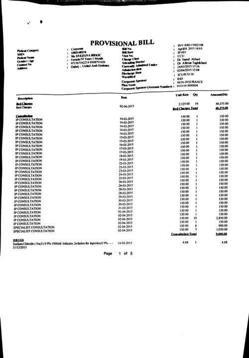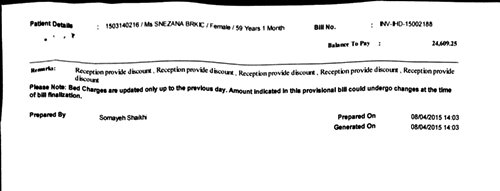 Sadly, as trouble often doesn’t come alone, the family of Mrs Brkic is now facing another serious problem – to settle the bill of the hospital treatment of Mrs Brkic, while in Iranian hospital. Mrs Brkic’s daugter and son in law are now due to pay (125,518.63aed = 32.000 euros), as well as their mother’s transportation fees.