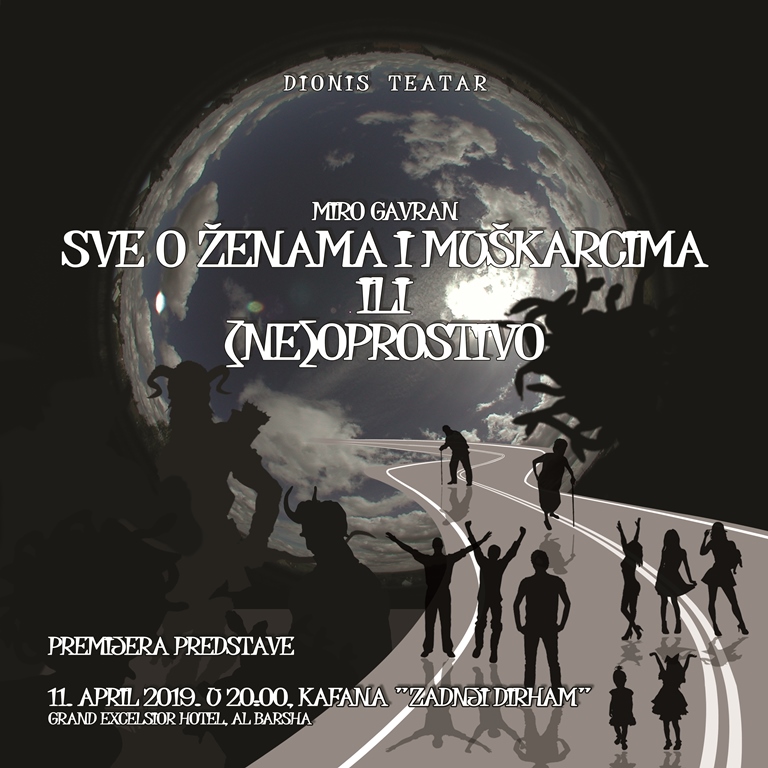 Naša dijaspora koja živi u Ujedinjenim Arapskim Emiratima (UAE) nije došla u pustinju samo da bi radila, zaradila i čekala dane odmora da bi osetila život. Posle “Wessele mashine”, jedinog ex-yu pop-rok benda u UAE na čijim se svirkama družimo nekoliko puta mesečno, u ovom delu sveta dobili smo i prvu amatersku trupu! Ovog četvrtka, 11. aprila, imaćemo priliku da premijerno pogledamo njihovu predstavu “(Ne)oprostivo ili Sve o ženama i muškarcima”, u hotelu “Grand Excelsior” u Barsi, u kafani “Zadnji dirham” u 20 sati.