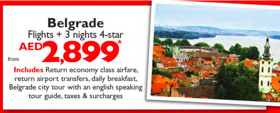Oglas na naslovnoj strani dnevnih novina "7 days" nudi veoma povoljne aranžmane za Rim i Beograd. Ukoliko odlučite da putujete preko agencija FLIGHT CENTRE, put za Rim koštaće vas malo više od 800 eura. Aranžman za Beograd koji uključuje avio kartu, transfere do i od aerodroma, tri noći u hotelu sa pet zvezdica, vodiča i sve takse košta manje od 700 eura.
