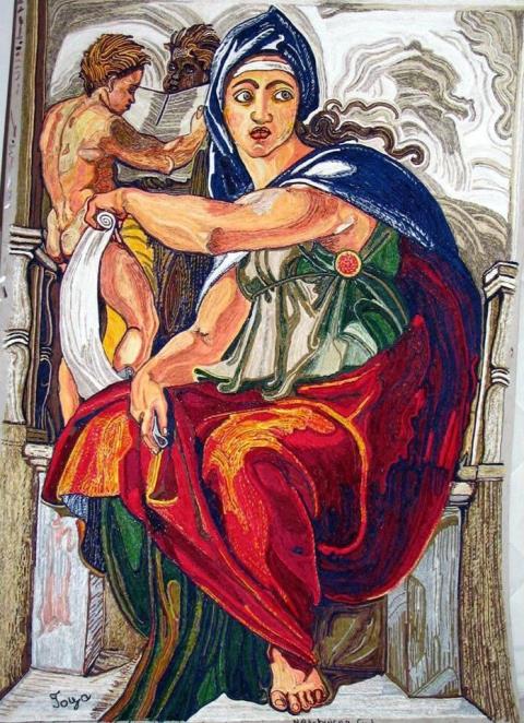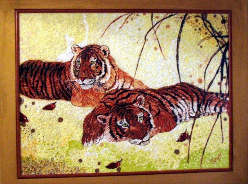 - Na času likovne kulture, kao i na slobodnim aktivnostima, volim da deca upoznaju različite materijale i rade sa njima – kaže Gordana Marković za Naš Biro. – I ja radim sa kartonima, peskom, drvetom, perlicama..., pa sam tako došla na ideju da sa svojim đacima uradim jednu sliku od salveta. Svidelo mi se, i potom sam počela sa motivima koje sam sama osmislila. Vremenom, postalo mi je sve zanimljivije i odlučila sam da pokušam da napravim neku repliku poznatih umetnika. Uzor su mi bili slavni slikari - Mikelanđelo, Gustav Klint i Hokusai.