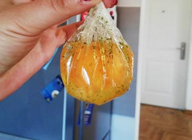 1. Uzeti prozirnu foliju i staviti je u neku činiju.