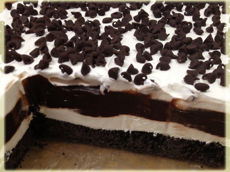 Puding pomešajte sa hladnim mlekom i umutite dok ne dobijete kompaktnu masu. Prelijte preko fila sa šlagom, pa ponovo vratite u frižider na hlađenje. Na kraju premažite ostatkom šlaga, pospite čokoladnim mrvicama i poslužite hladno!