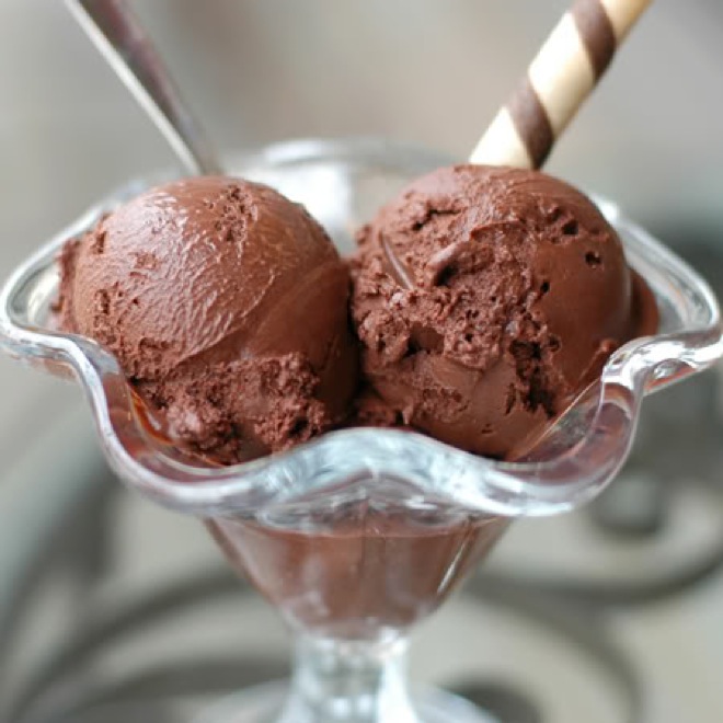 3. Krem ostavite da se ohladi povremeno mešajući kako bi sprečili nastanak kore na vrhu. Umutite šlag od slatke pavlake i sjedinite ga sa čokoladnim kremom. Smesu stavite u zamrzivač dva sata dok se u potpunosti ne stvrdne. Tako smrznuto je ubacite u blender i mutite mikserom dok ne dobijte gustu, lepljivu teksturu. Potom poslužite.