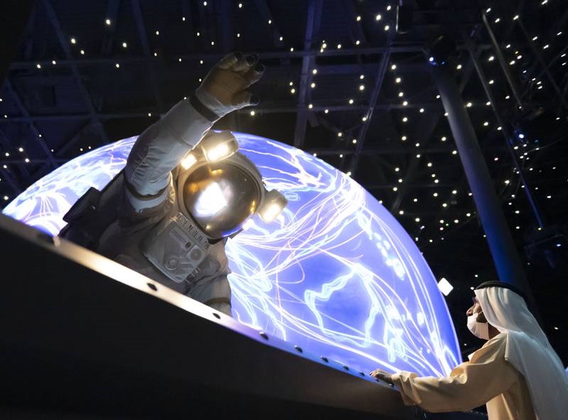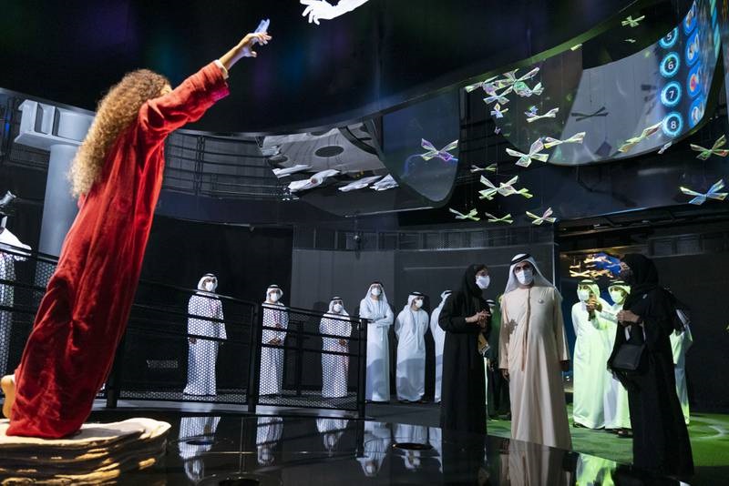 Paviljon mobilnosti takođe naglašava ključne doprinose Arapa kroz istoriju, počevši od drevnih istraživanja do misije Emirates Mars u UAE i planova za istraživanje Venere. Šeik je takođe posetio Kuću mudrosti, smeštenu u paviljonu, u kojoj se nalaze istorijske ličnosti iz zlatnog doba arapske civilizacije.