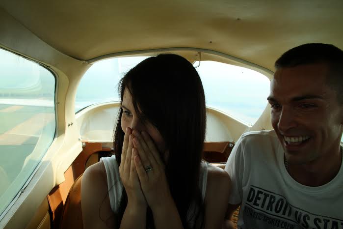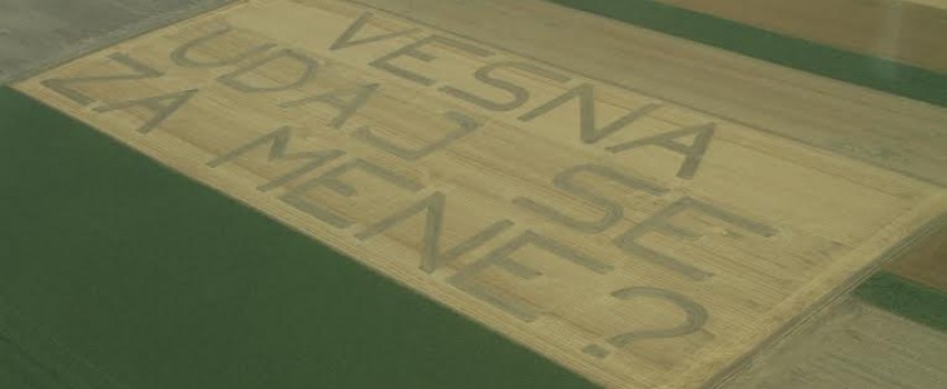 Sa visine od oko pola kilometra, na jednom od brojnih polja preko kojih su preleteli, Mariova izabranica je ugledala natpis "Vesna, udaj se za mene".