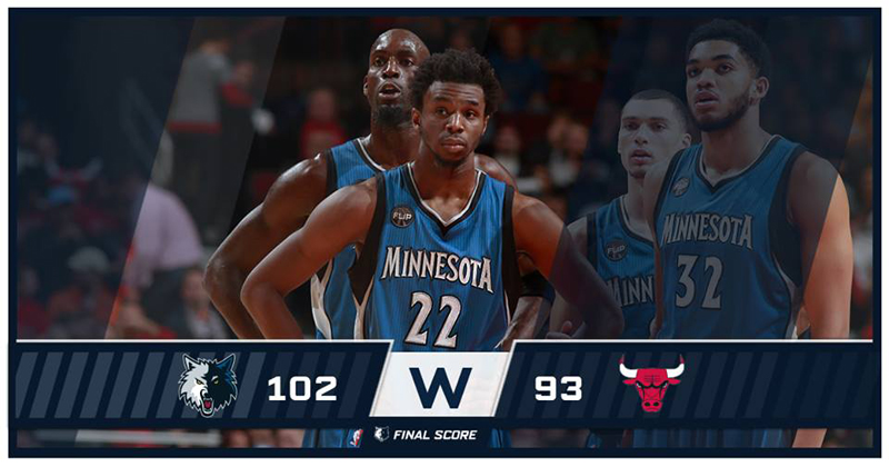 Košarkaši Minesote zabeležili su značajnu pobedu na gostovanju Čikagu i to posle produžetka 102:93, a jedan od najzaslužnijih za trijumf Timbervulfsa bio je srpski reprezentativac Nemanja Bjelica.