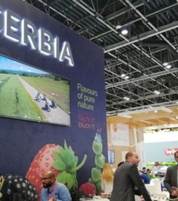 Ambasador Srbije u UAE, Nj. E. Stanimir Vukićević posetio je štand Srbije i razgovarao sa predstavnicima kompanija o mogućnostima plasmana naših proizvoda